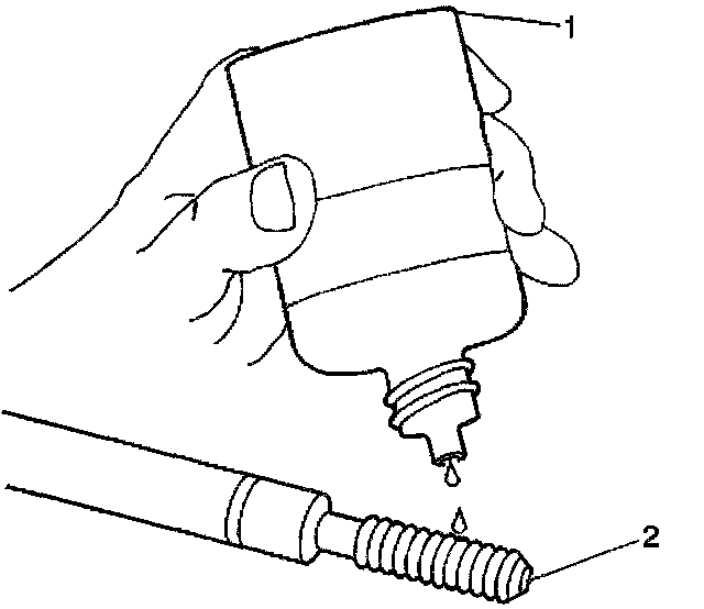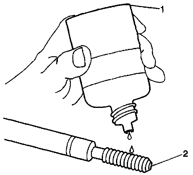 15. Lubricate the threads of the installer tool (2) with the driver oil (1).