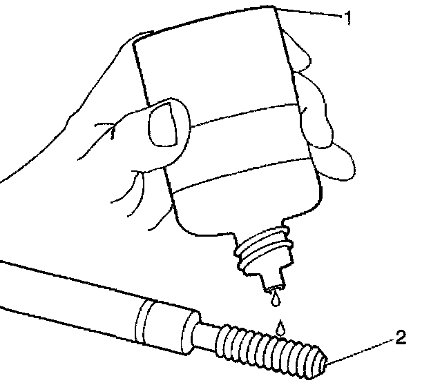11. Apply thread-lock LOCTITE (tm) 277, J 42385-109 (1), or equivalent to the insert OD threads (2).
