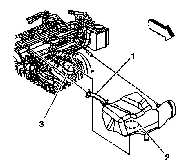 3. Remove the air inlet duct and resonator (2).