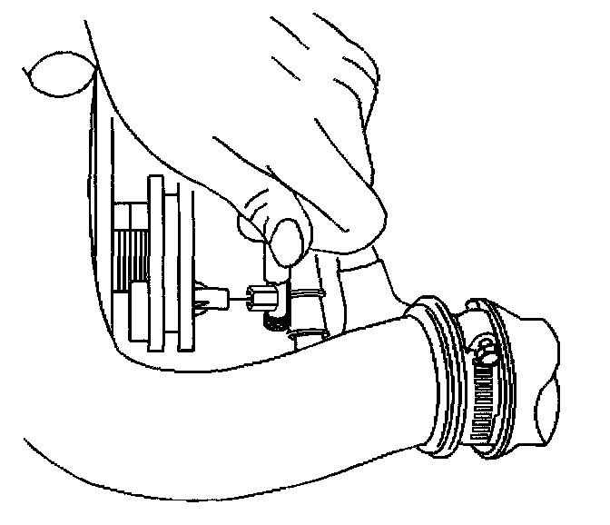 15. Remove the bolt retaining the surge tank outlet hose to the intake manifold.
