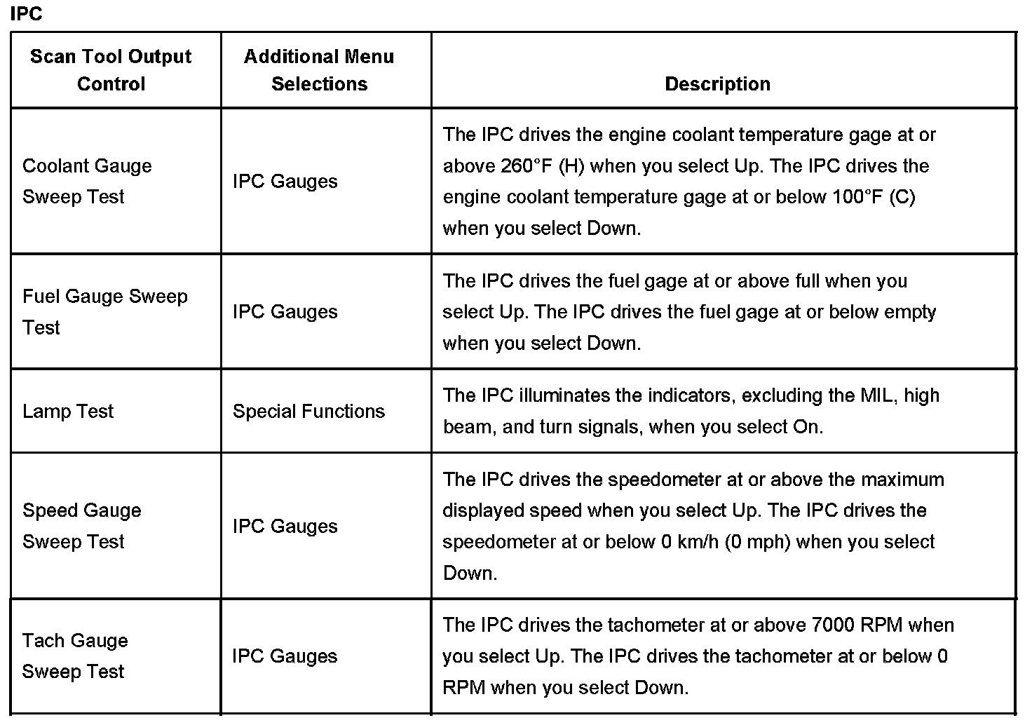 Scan Tool Output Controls - IPC