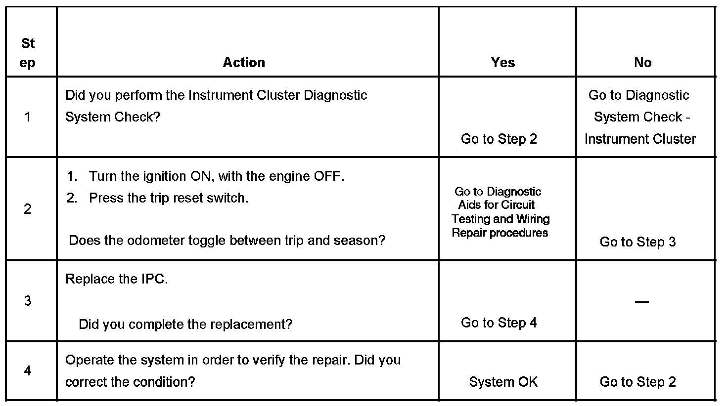 Odometer Trip/Reset Switch Inoperative