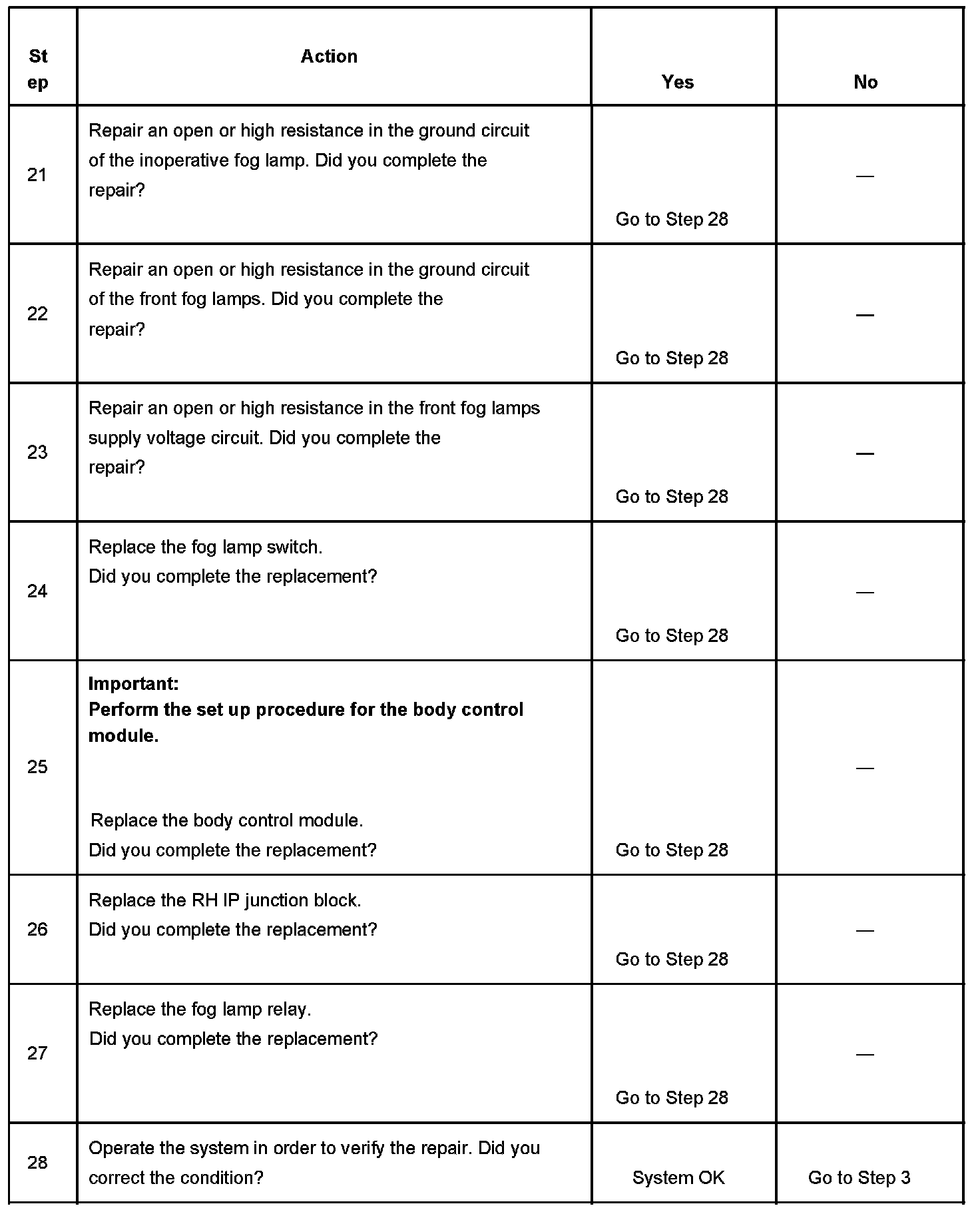 Fog Lamps Inoperative
