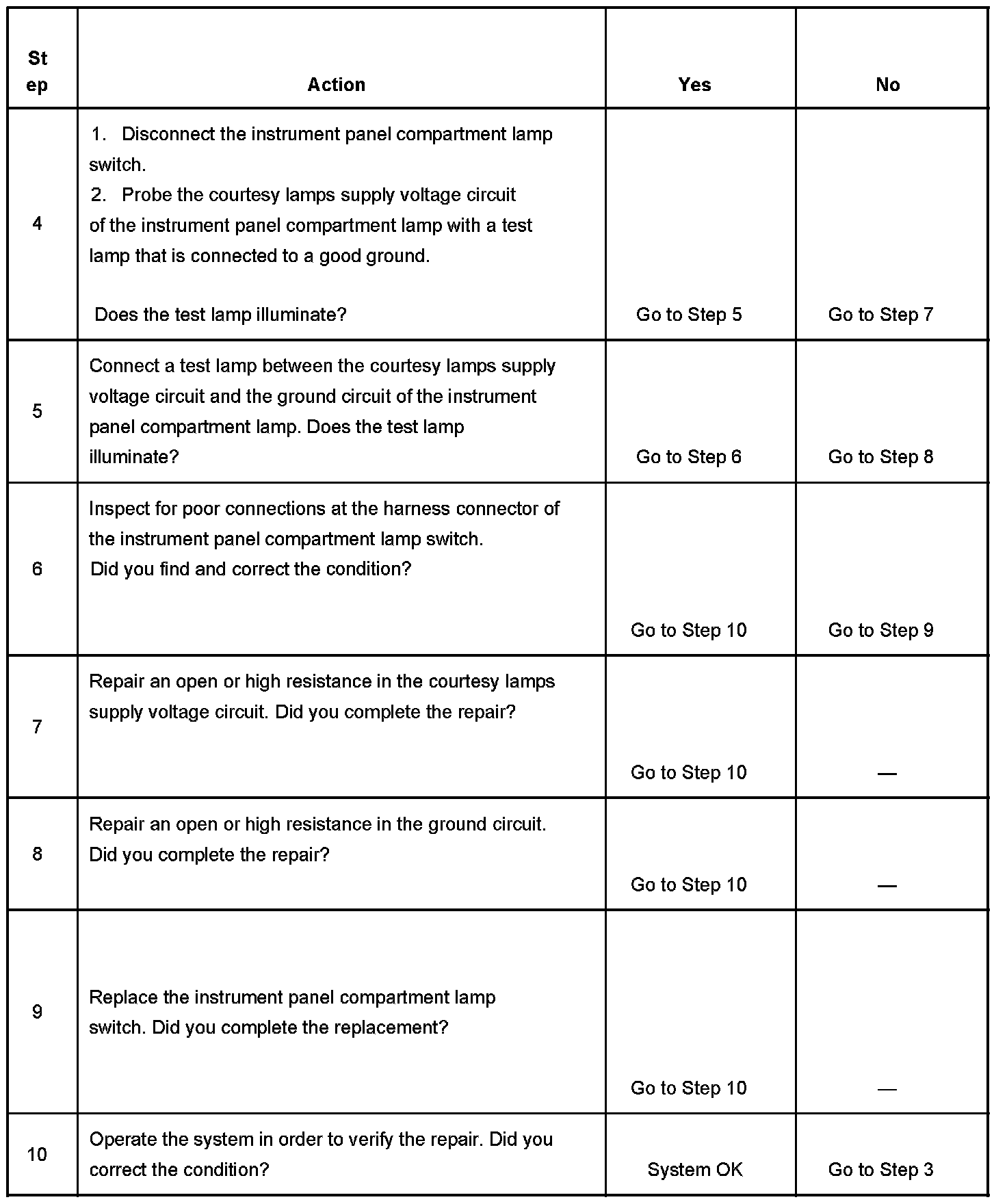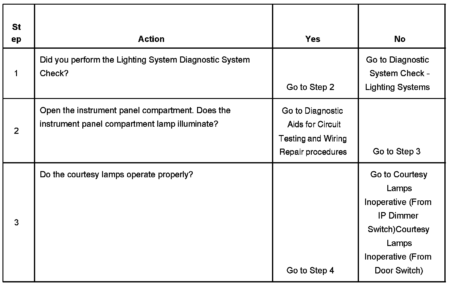 Instrument Panel (I/P) Compartment Lamp Inoperative