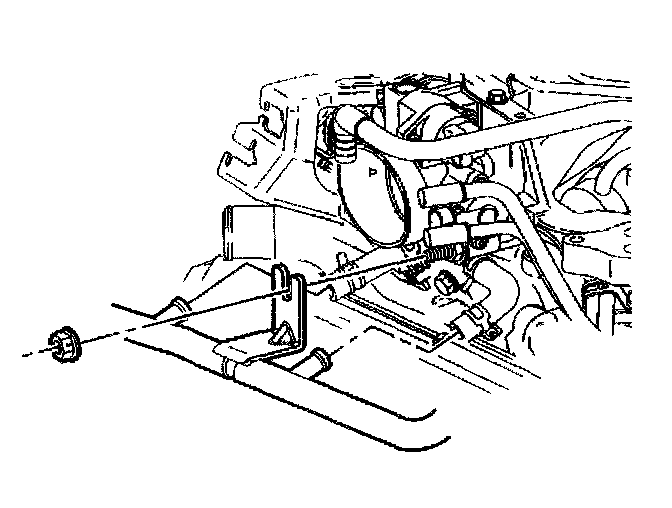 11. Remove the thermostat bypass pipe-to-engine front cover bolt.