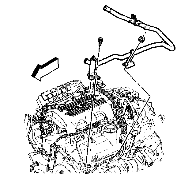 2. Install the thermostat bypass pipe-to-engine front cover bolt.