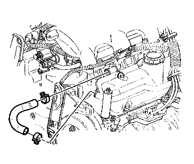 4. Using the J 38185, reposition and secure the hose clamp at the thermostat bypass pipe.