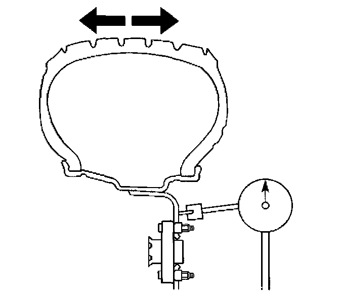 The following procedure describes how to inspect the wheel bearing/hub for excessive looseness. If you are inspecting the wheel bearing/hub for excessive runout, refer to Hub/Axle Flange and Wheel Stud Runout Inspection in Vibration Diagnosis and Correction.