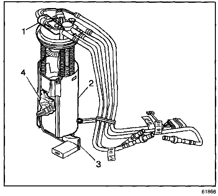 The fuel pump is mounted in the fuel sender assembly reservoir. The fuel pump is an electric high-pressure pump. Fuel is pumped to the fuel injection system at a specified flow and pressure. Excess fuel from the fuel injection system returns to the fuel tank through the fuel return pipe. The fuel pump delivers a constant flow of fuel to the engine even during low fuel conditions and aggressive vehicle maneuvers. The control module controls the electric fuel pump operation through a fuel pump relay. The fuel pump flex pipe acts to dampen the fuel pulses and noise generated by the fuel pump.