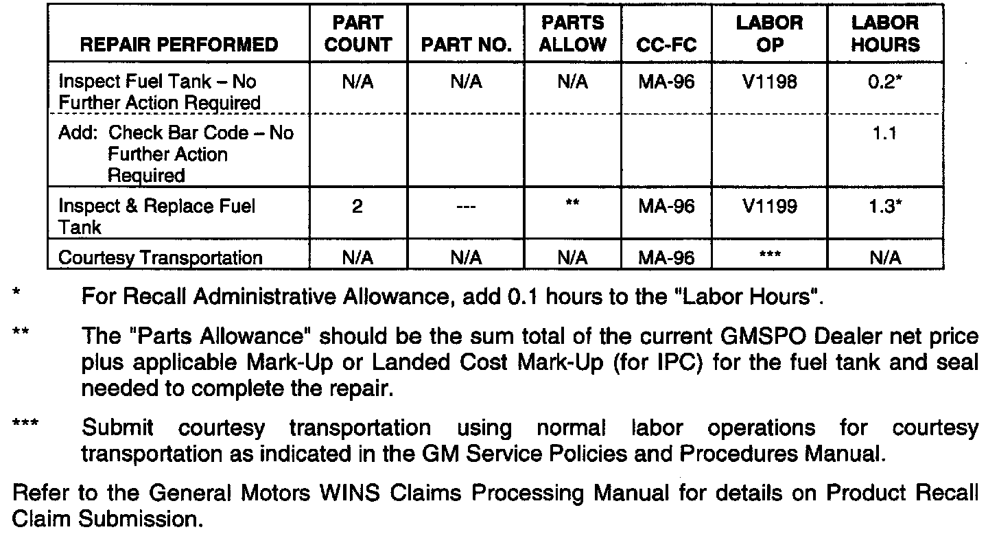 Parts required to complete this recall are to be obtained from General Motors Service Parts Operations (GMSPO). Please refer to your "involved vehicles listing" before ordering parts.