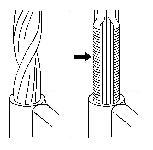 IMPORTANT: Refer to the thread repair kit manufacturer's instructions regarding the size of the drill and tap to use.Avoid any buildup of chips. Back out the tap every few turns and remove the chips.