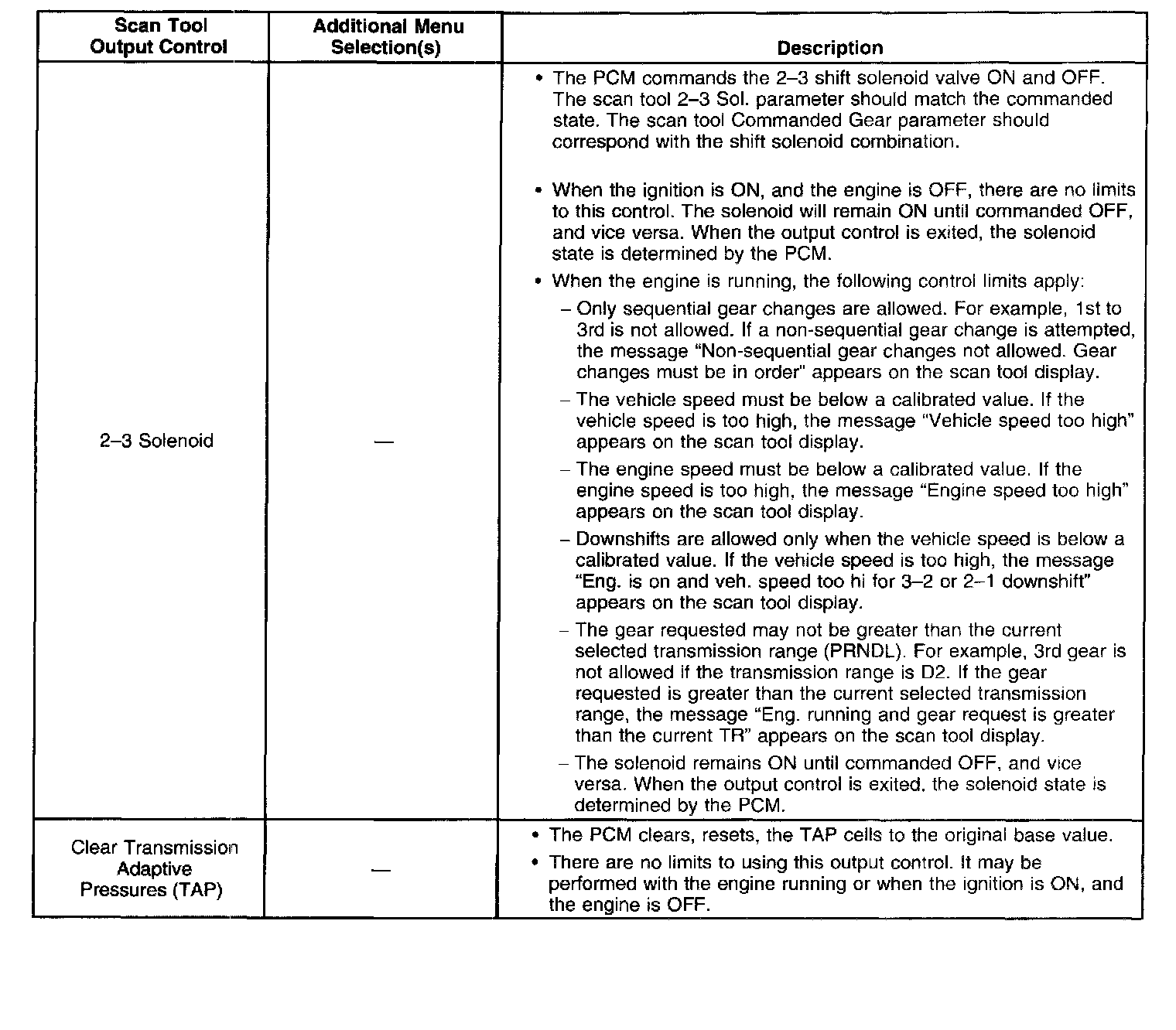 Scan Tool Output Controls