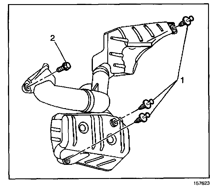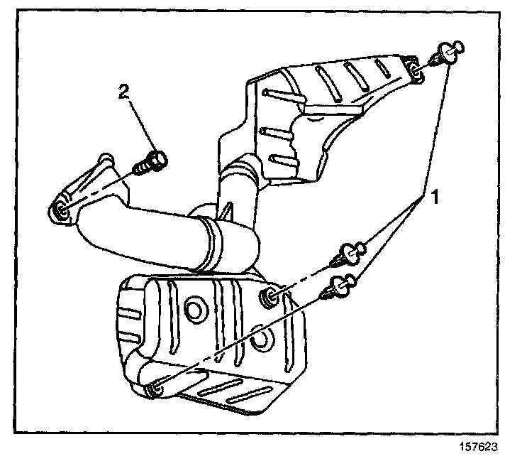 6. Remove the 3 attaching fasteners (1) from the resonator.