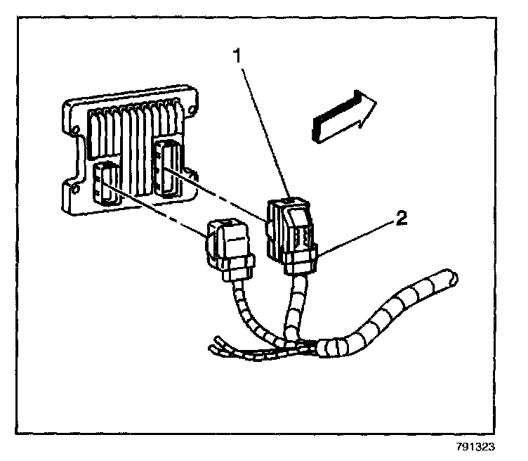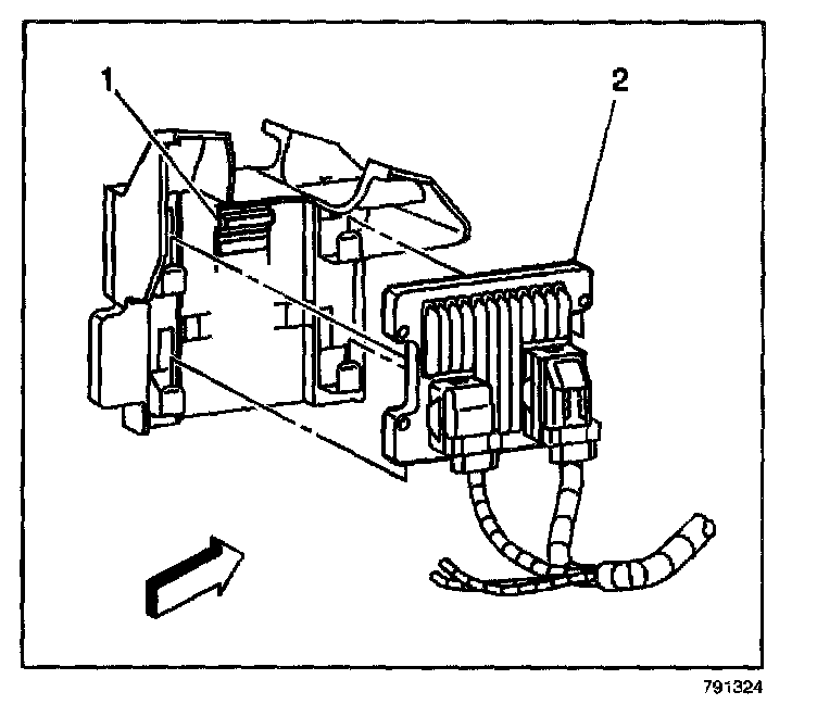 1. Slide the PCM into the PCM bracket. The retaining tab (1) will look in place.