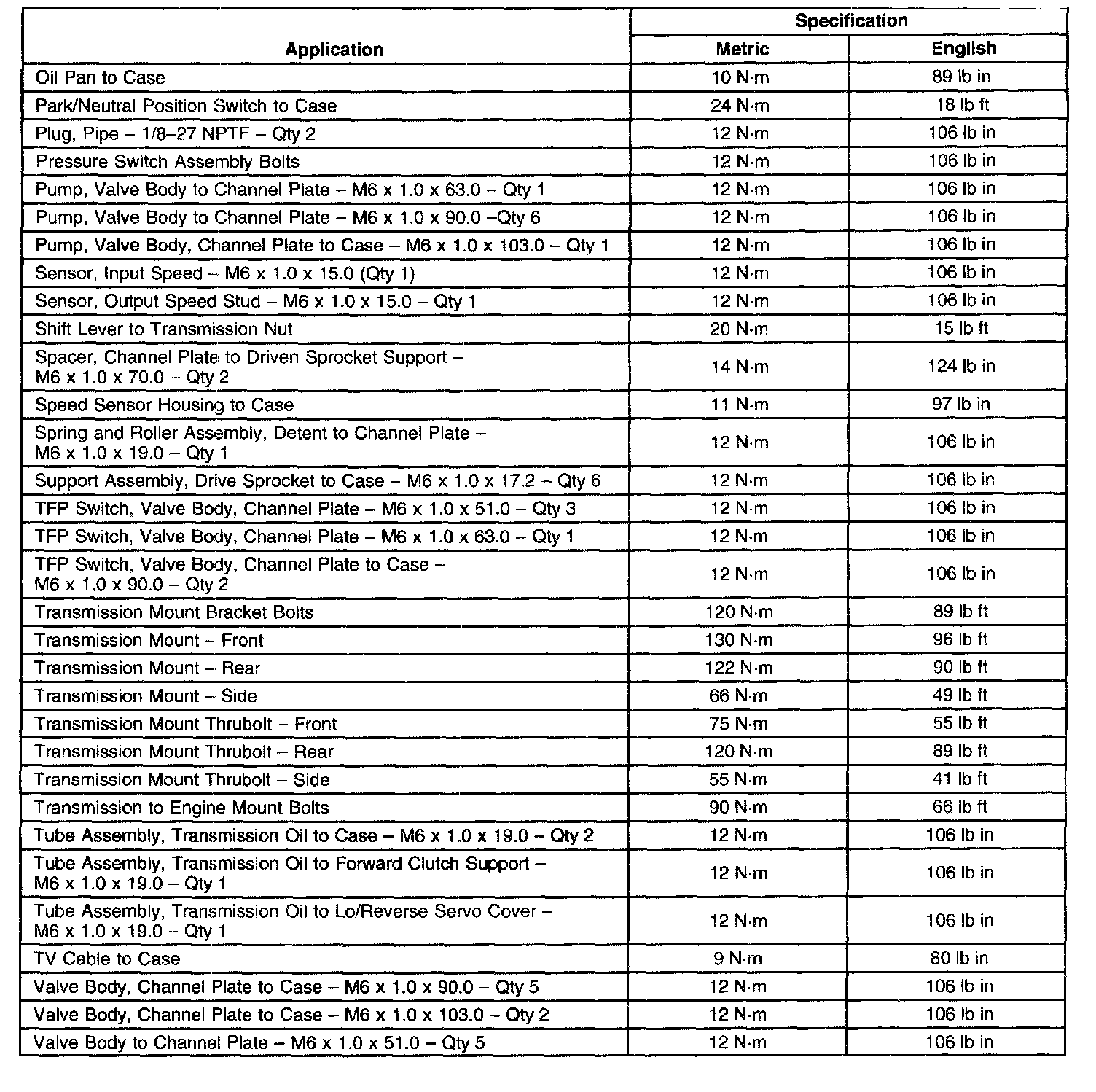 Fastener Tightening Specifications