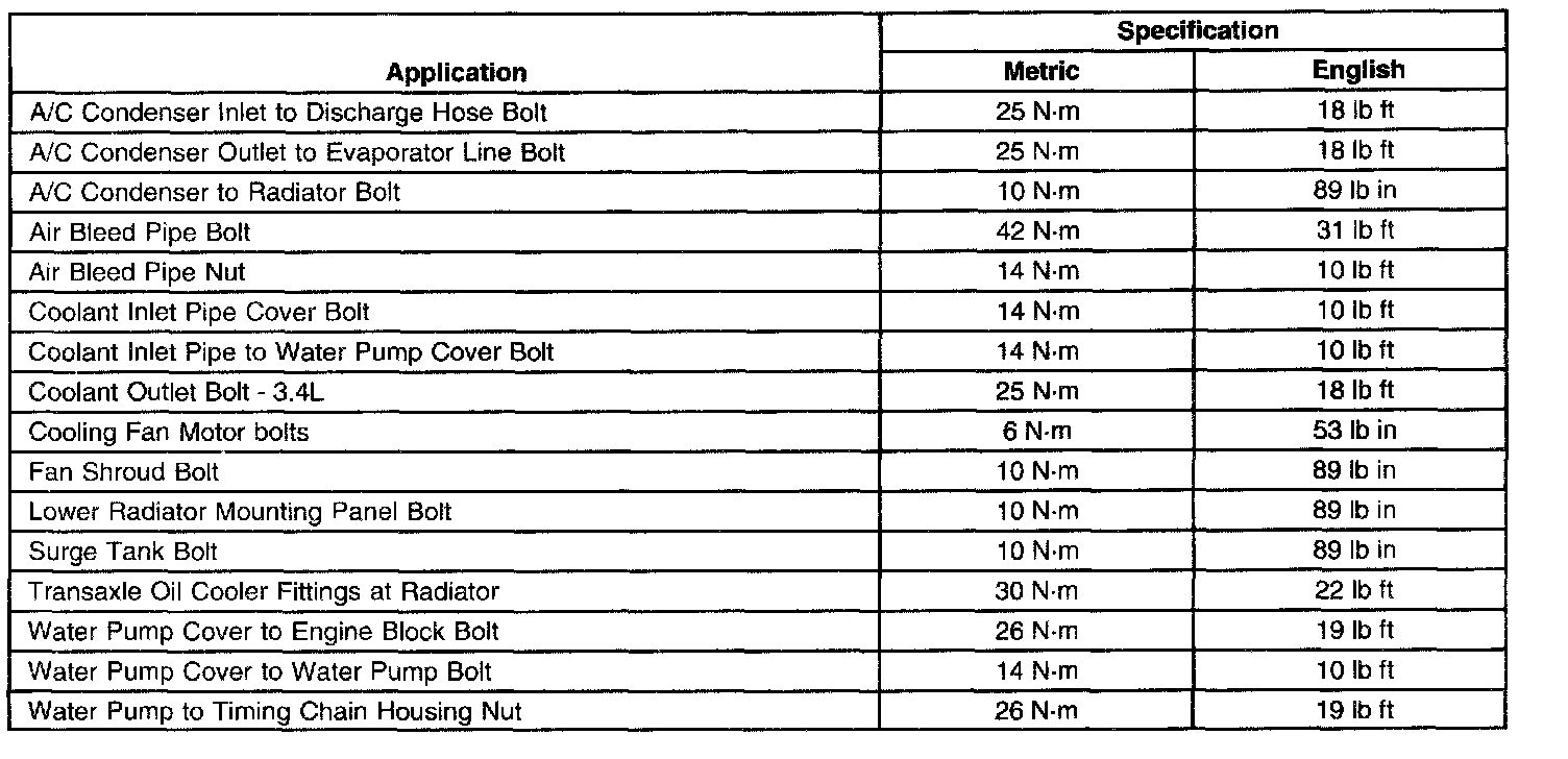 Torque Specifications: