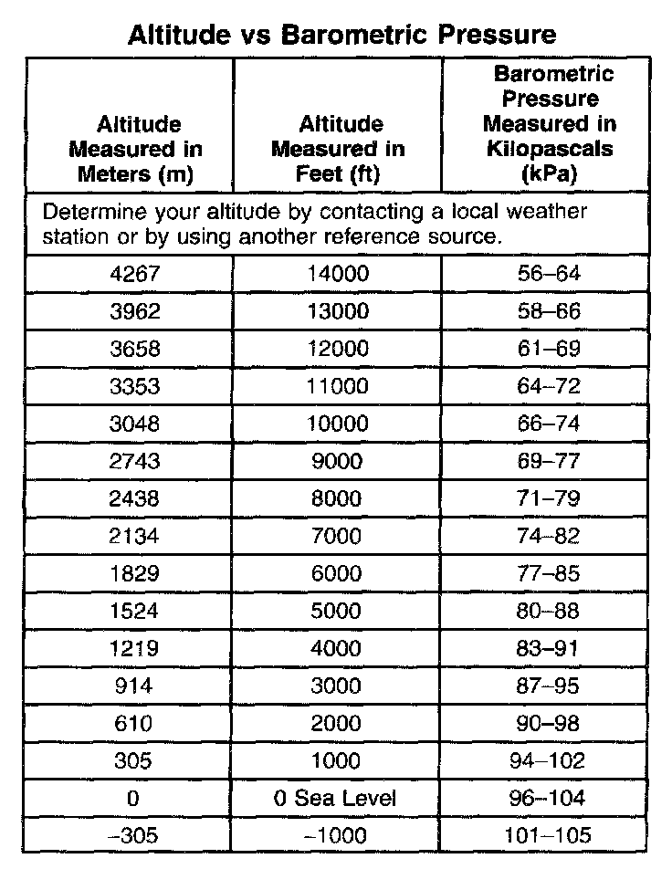 Pressure, Vacuum and Temperature Specifications