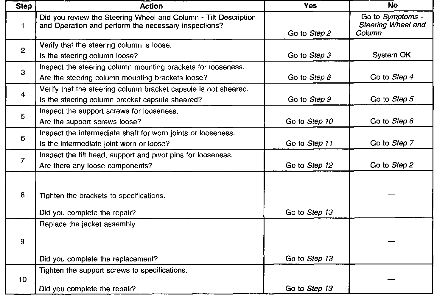 Looseness In Steering Column