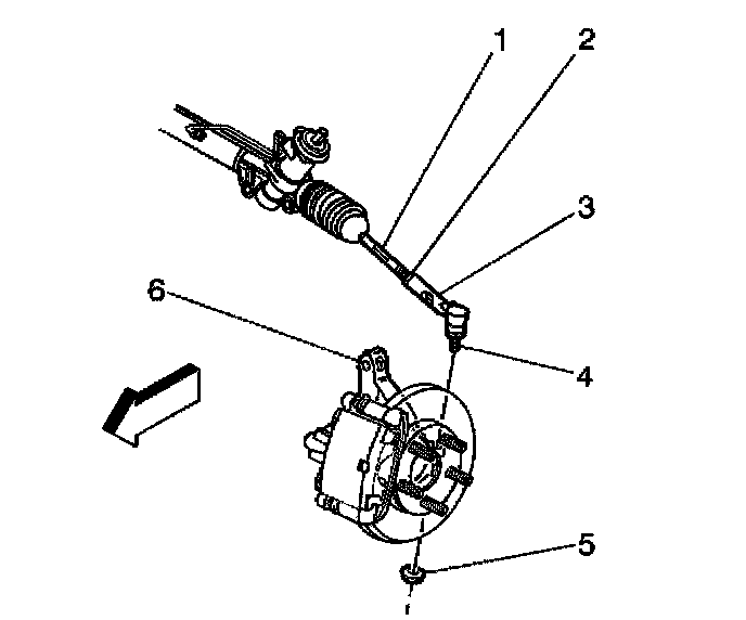 4. Remove the tie rods (3) from the steering knuckles (6).