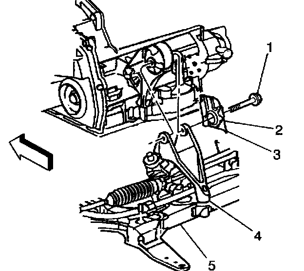 10. Loosen the front bolts (5) on the crossmember (4).