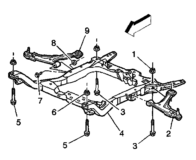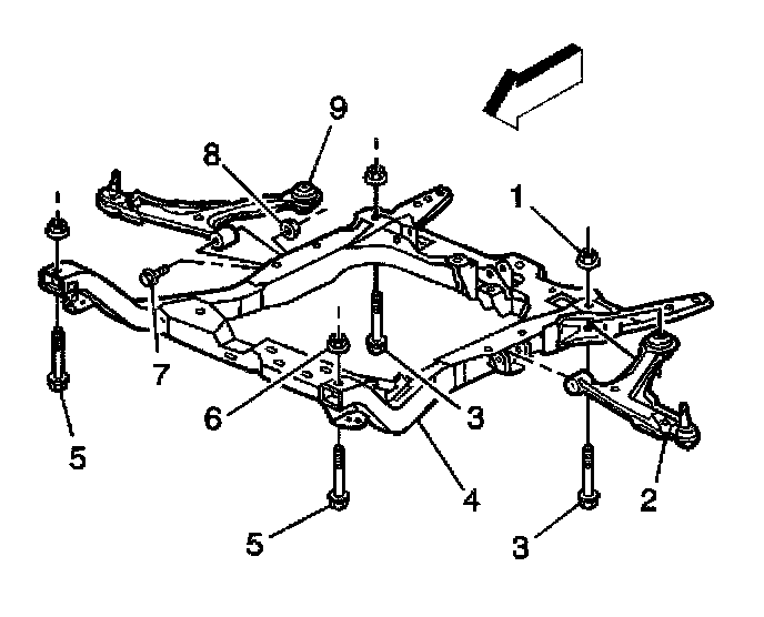 2. Install the front crossmember bolts (5).