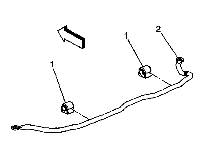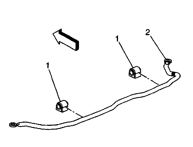 4. Remove the stabilizer shaft bushings (1) from the stabilizer shaft (2).