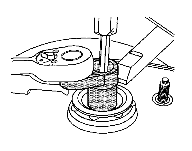 5. Use a 45 TORX socket in order to hold the strut shaft. Use the J 42991 to Install the upper strut mount nut