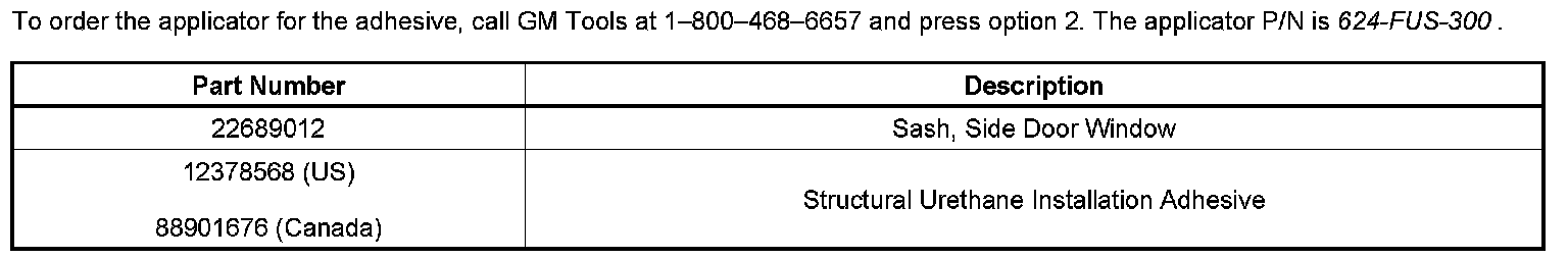 This bulletin is being revised to update the applicator P/N in the Parts Information section. Please discard Corporate Bulletin Number 01-08-64-012E (Section 08 - Body & Accessories).