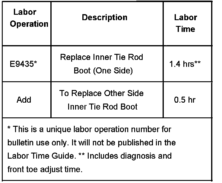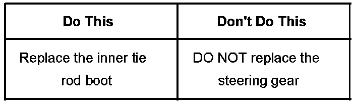 Replace the inner tie rod boot. Refer to the Rack and Pinion Boot Replacement procedure in SI.