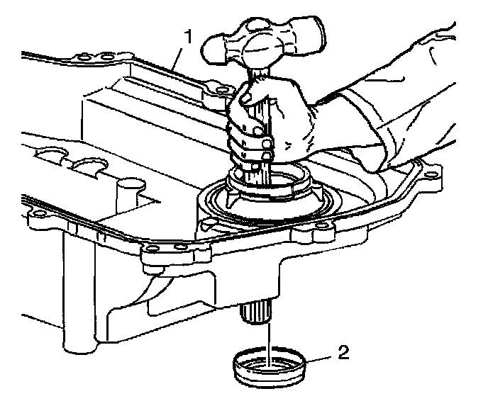 2. Remove the side cover axle sea[ (2). Use the handle end of a hammer.