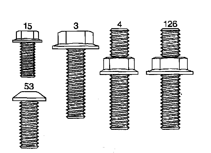 13. Refer to the graphic in order to find the correct installation points of the bolts and the stud.