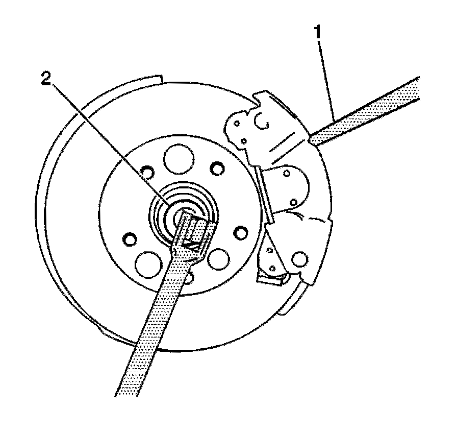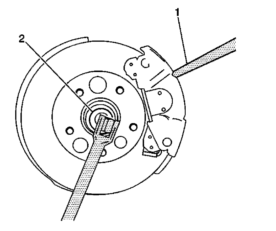 4. Insert a drift (1) into the rotor and against the caliper in order to prevent the rotor from turning.