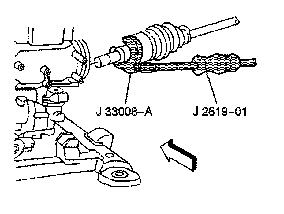 11. Using the J 2619-01 , the J 33008-A and the J 29794 , disengage the wheel drive shaft from the transaxle.