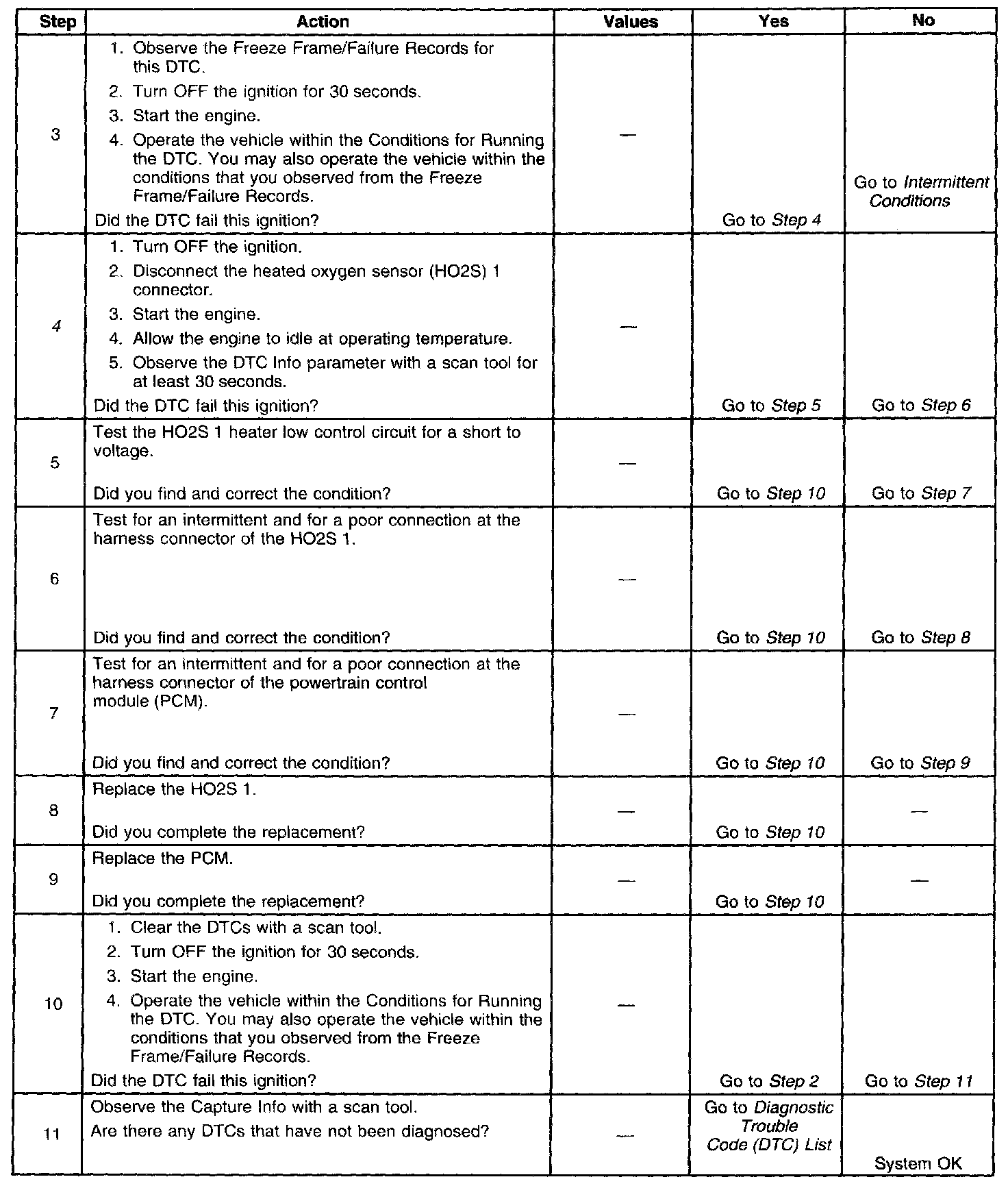 4. A DTC fail in this step verifies the condition is present with the HO2S 1 disconnected.