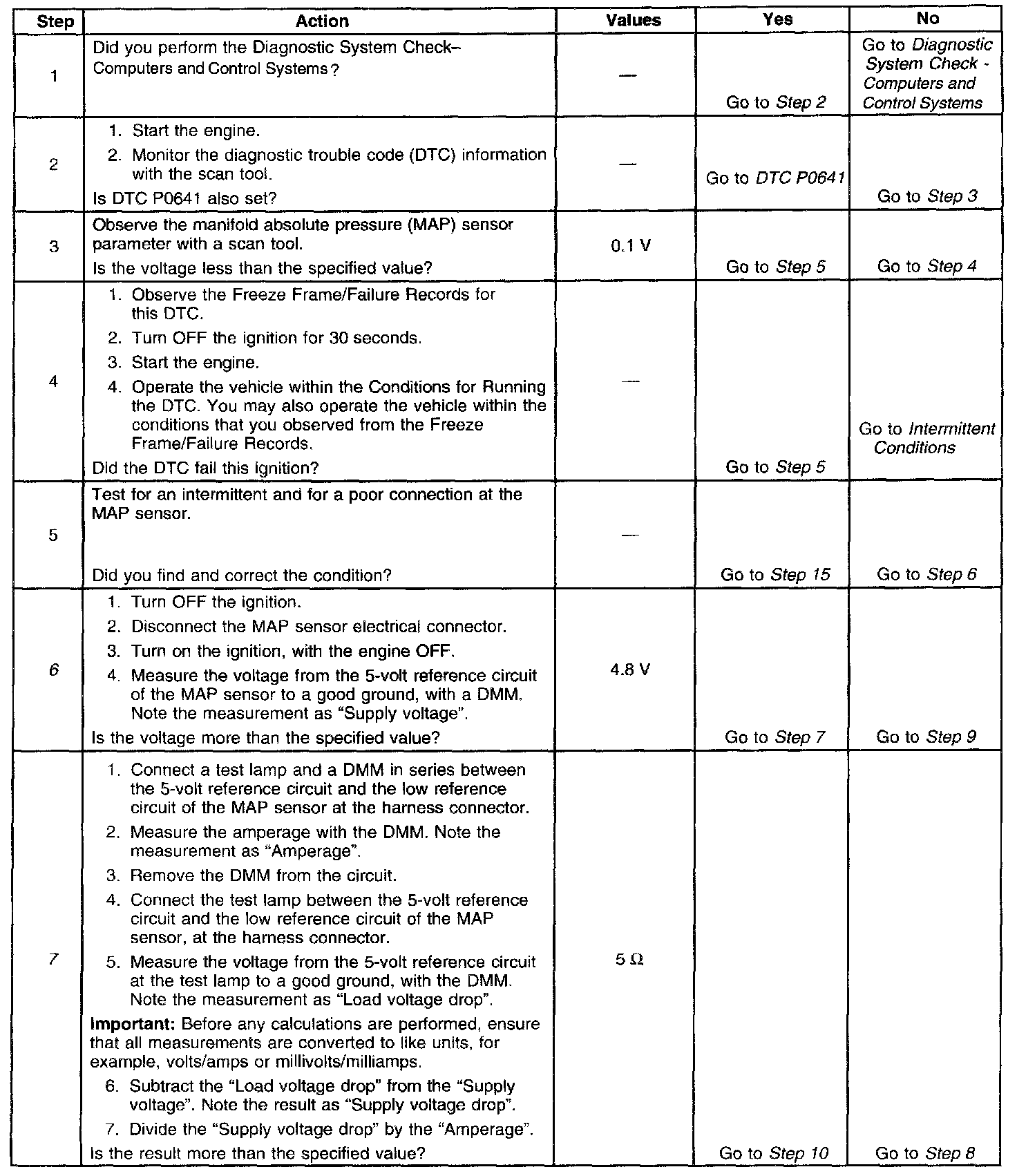 The numbers below refer to the step numbers on the diagnostic table.