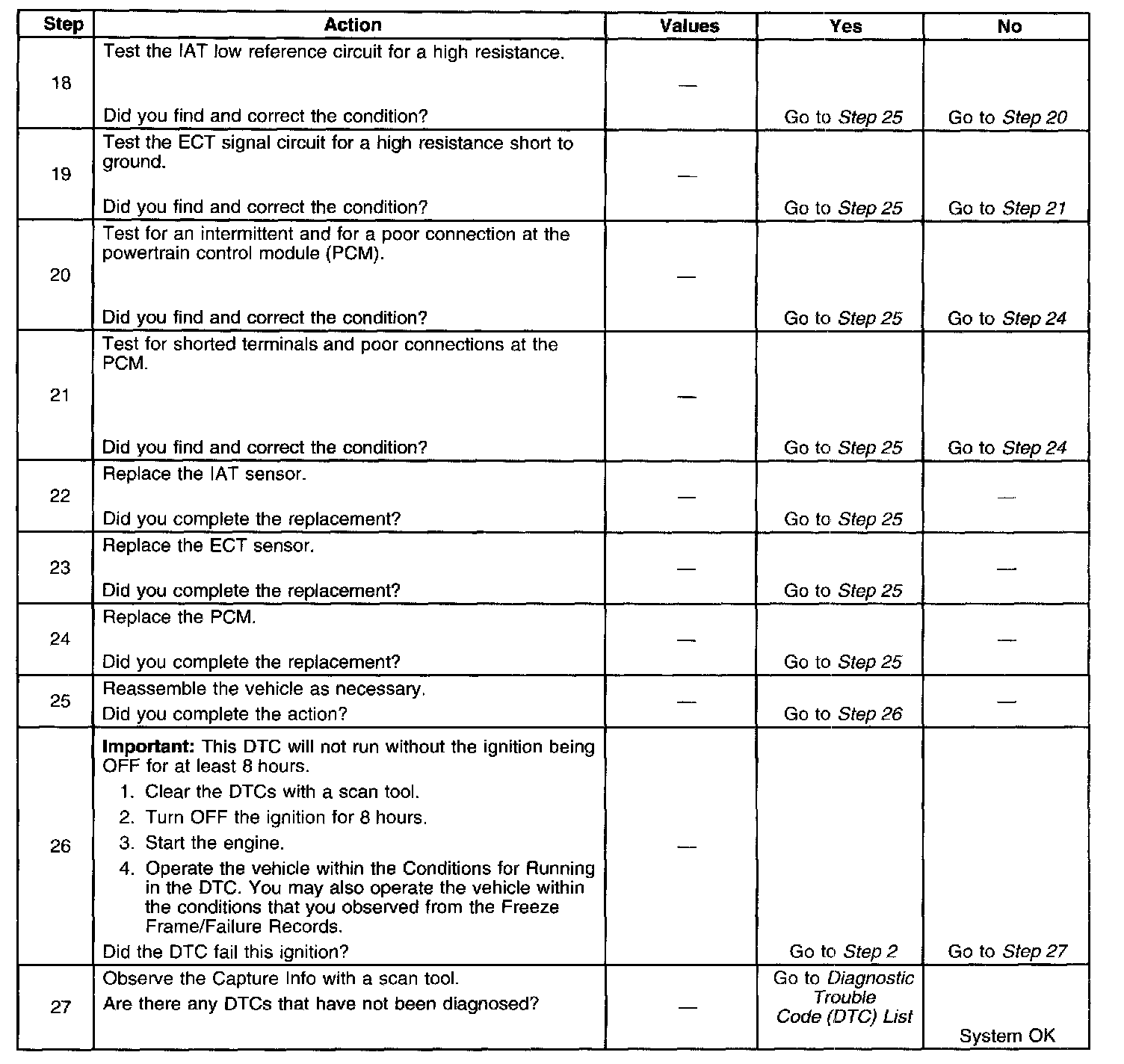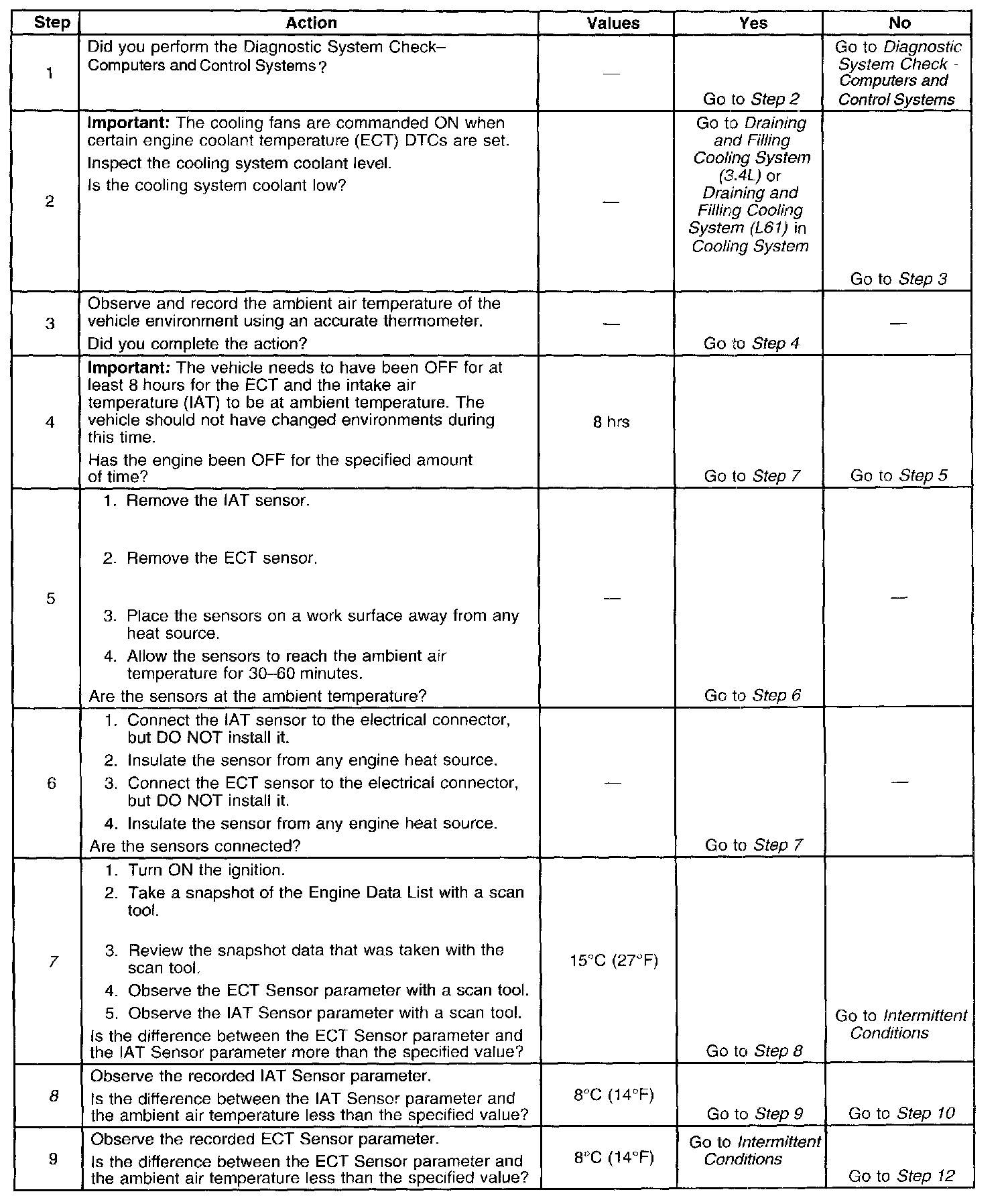 - The PCM detects a temperature difference between the ECT sensor and the IAT sensor of more than 100°C (180°F) at start up.