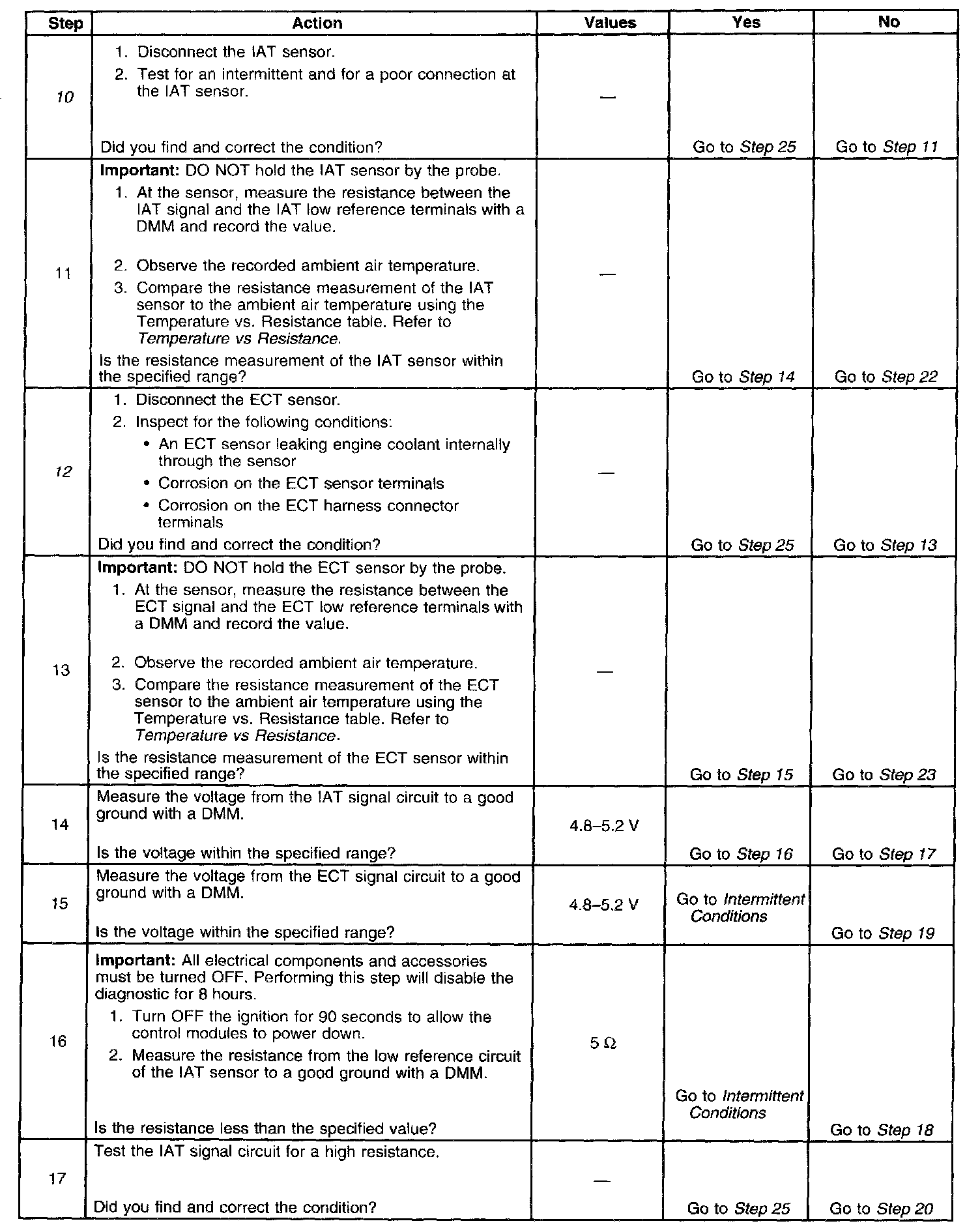 - The time spent cranking the engine, without starting is more than 5 seconds with a temperature difference between the ECT sensor and the IAT sensor more than 15°C (27°F).