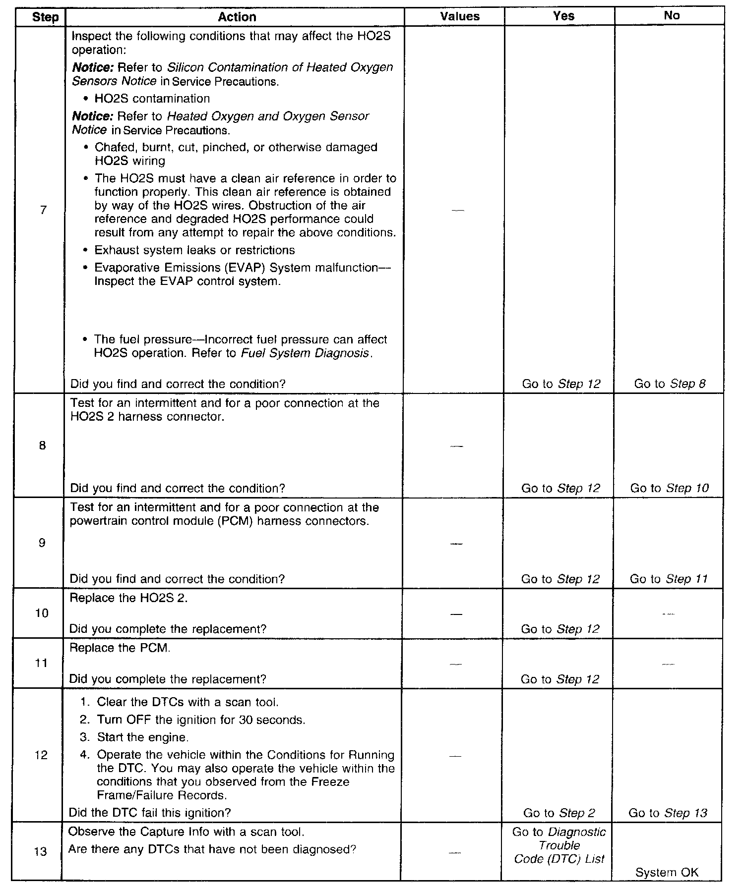 The PCM detects that the HO2S 2 signal voltage remains below 78 mV during Closed Loop operation, for more than 2 minutes.