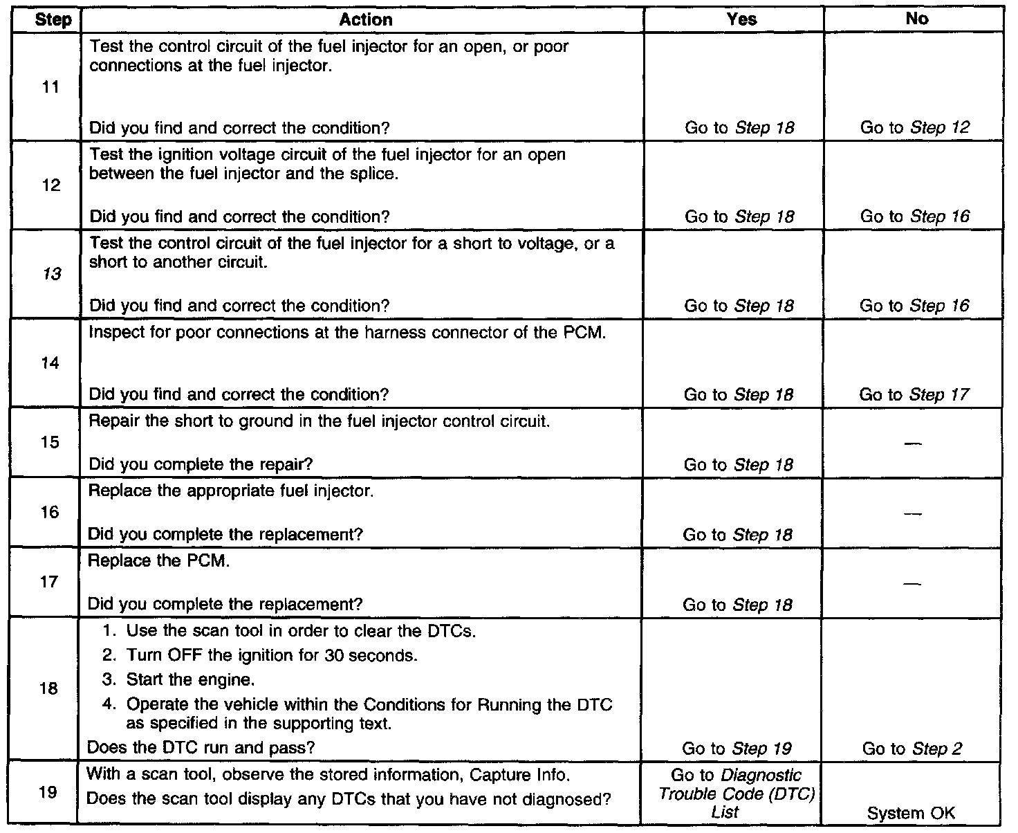 13. This step isolates the circuit between the multi-way connector and the fuel injector. A short to voltage on the fuel injector control circuit will set this DTC.
