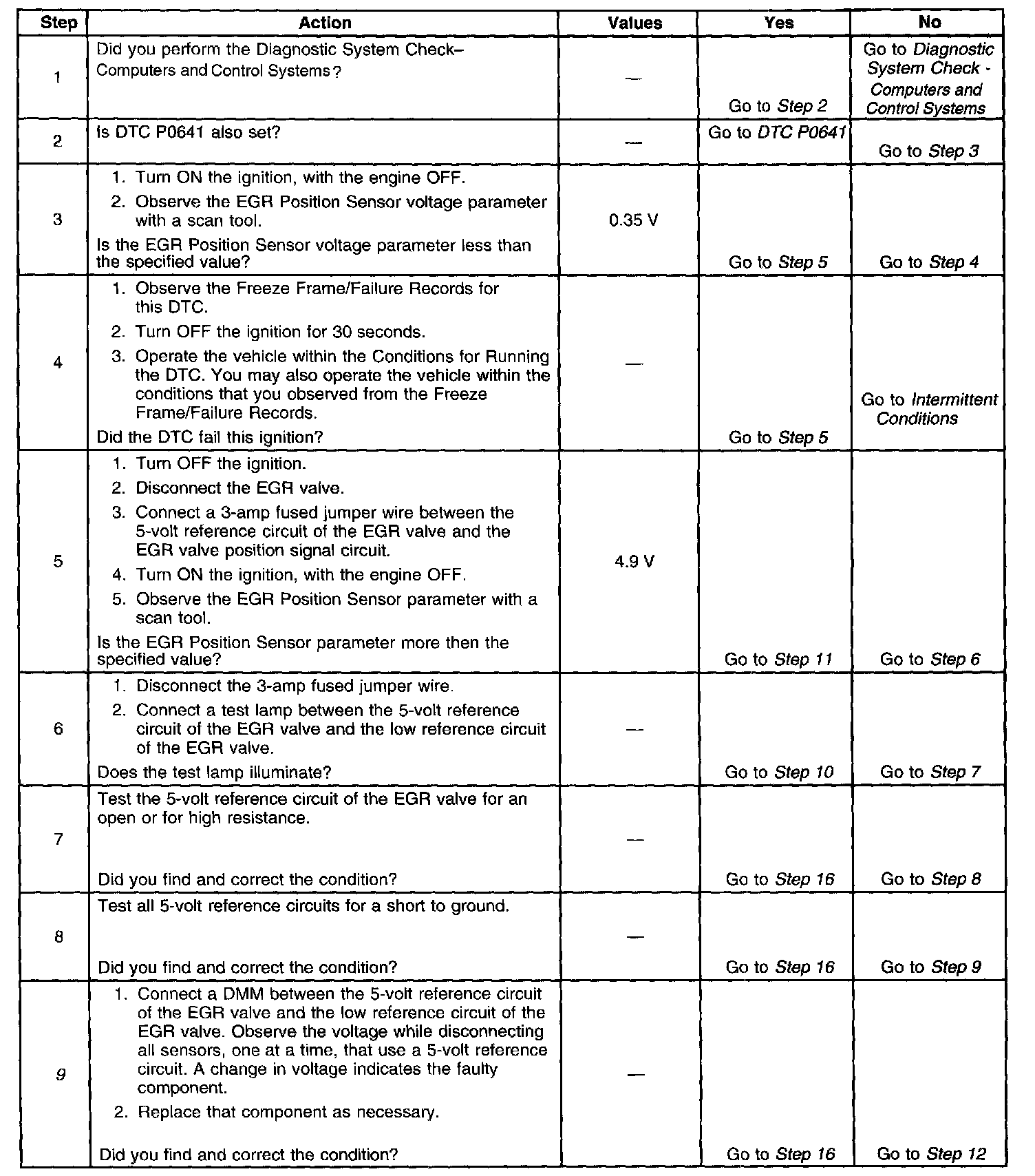 - The EGR Position Sensor parameter is less than 0.35 volts.