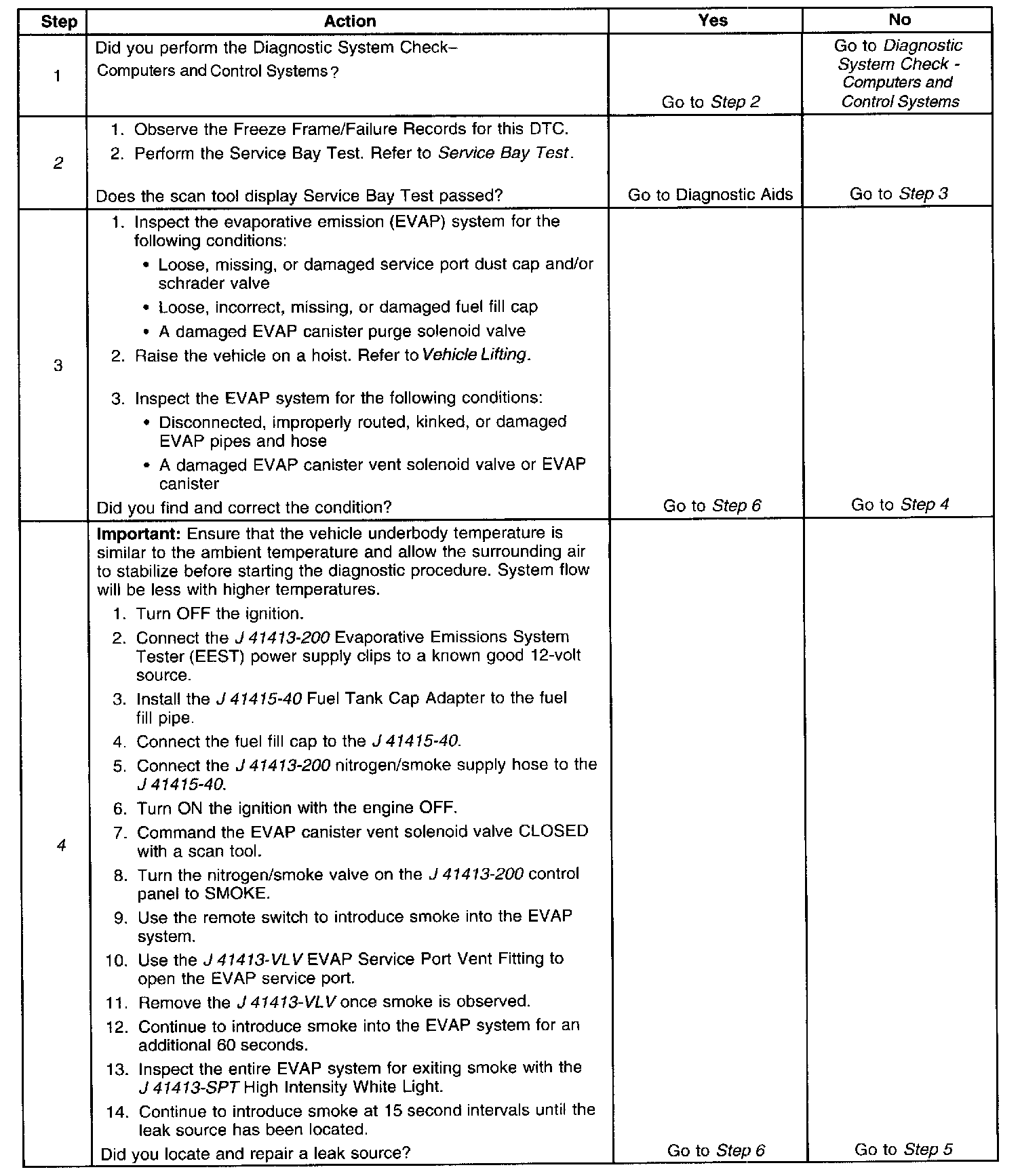 - To help locate intermittent leaks, use the J 41413-200 Evaporative Emissions System Tester (EEST) to introduce smoke into the EVAP system. Move all EVAP components while observing smoke with the J 41413-SPT High Intensity White Light.