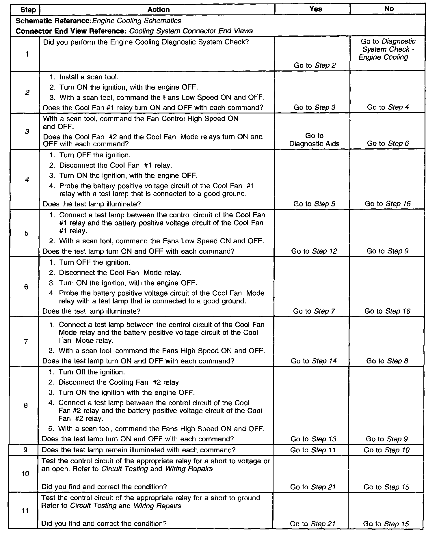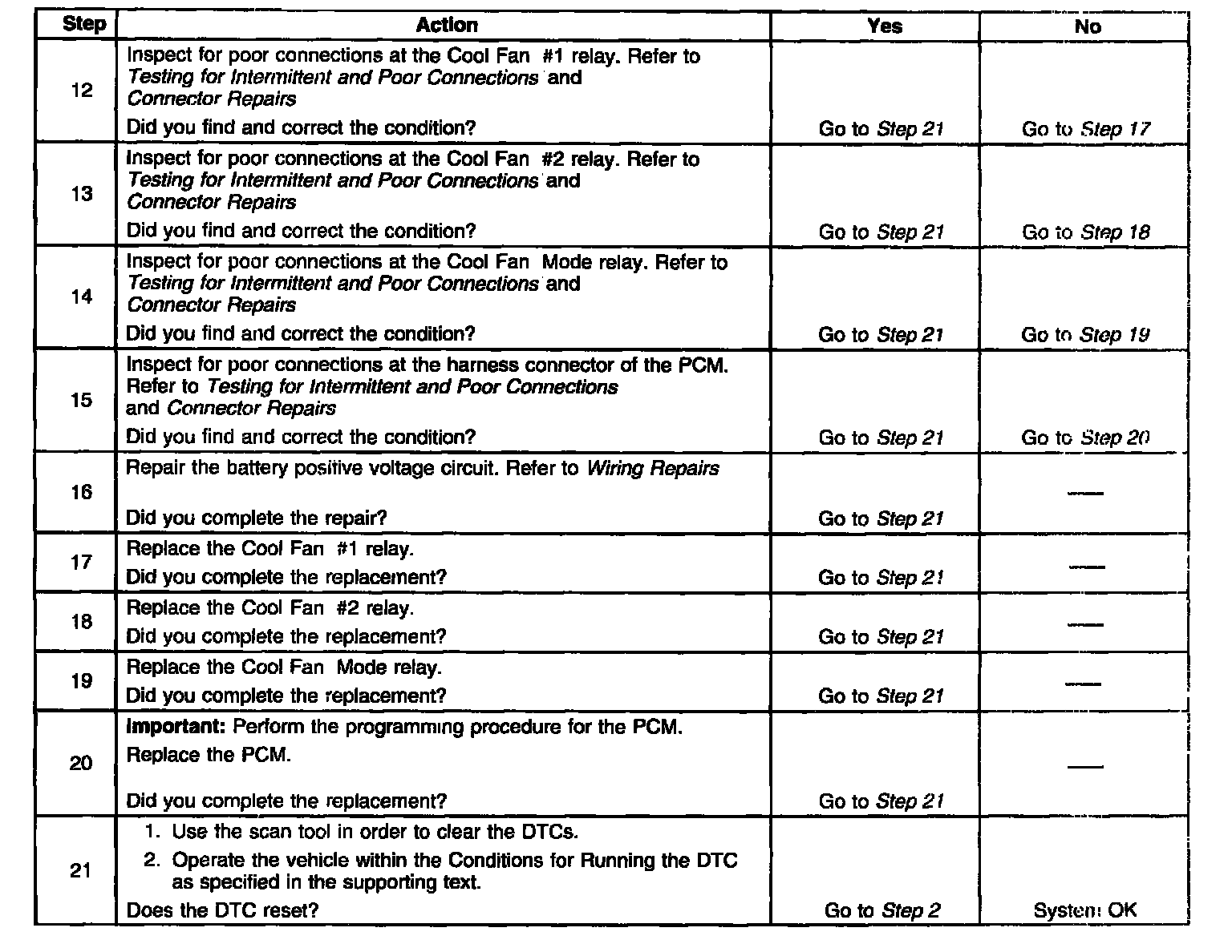 ^ The PCM detects an open, a short to ground or a short to voltage on the cooling fan relay control circuit.
