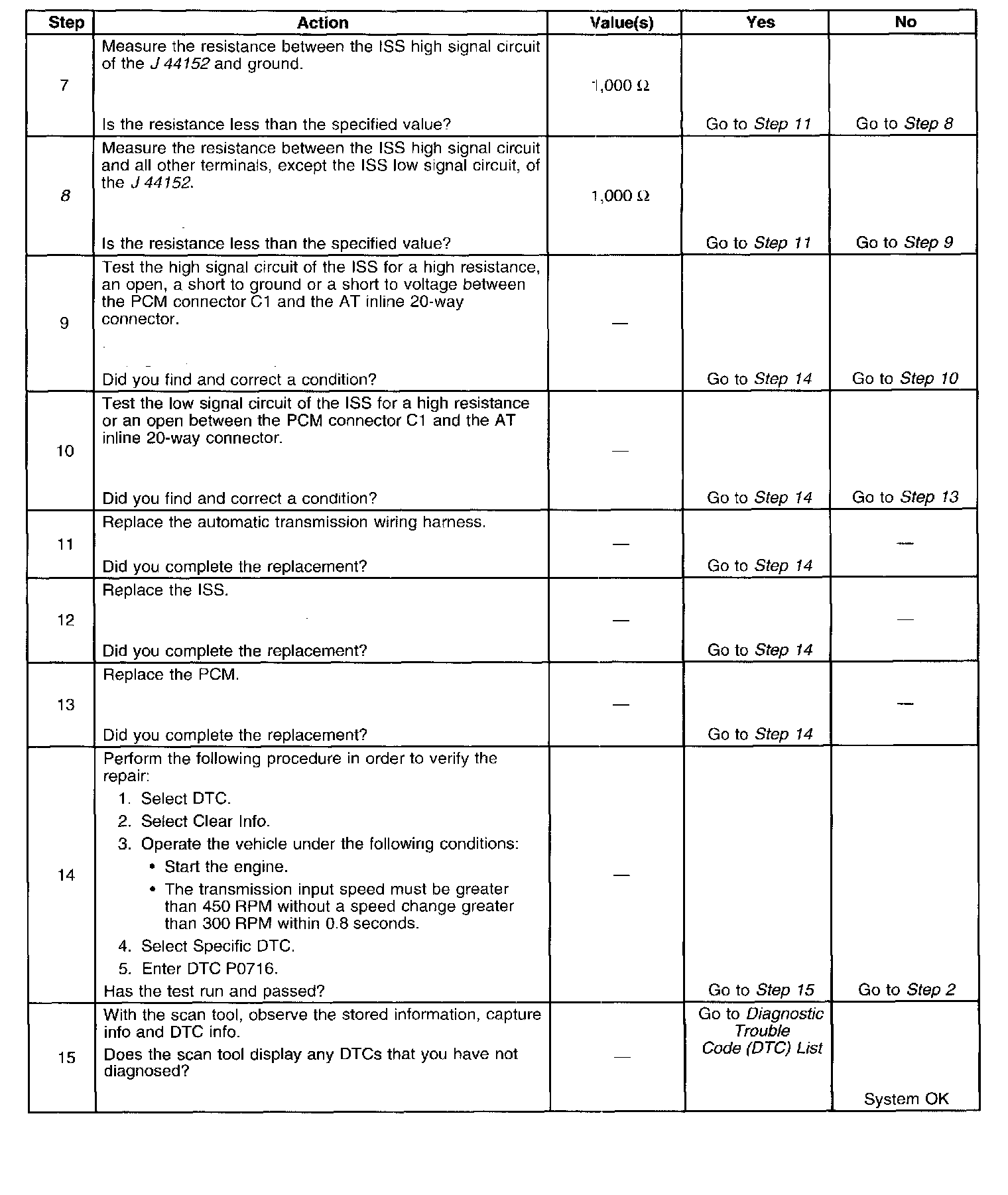 8. This step tests the ISS high signal circuit for being shorted to another circuit within the transmission.