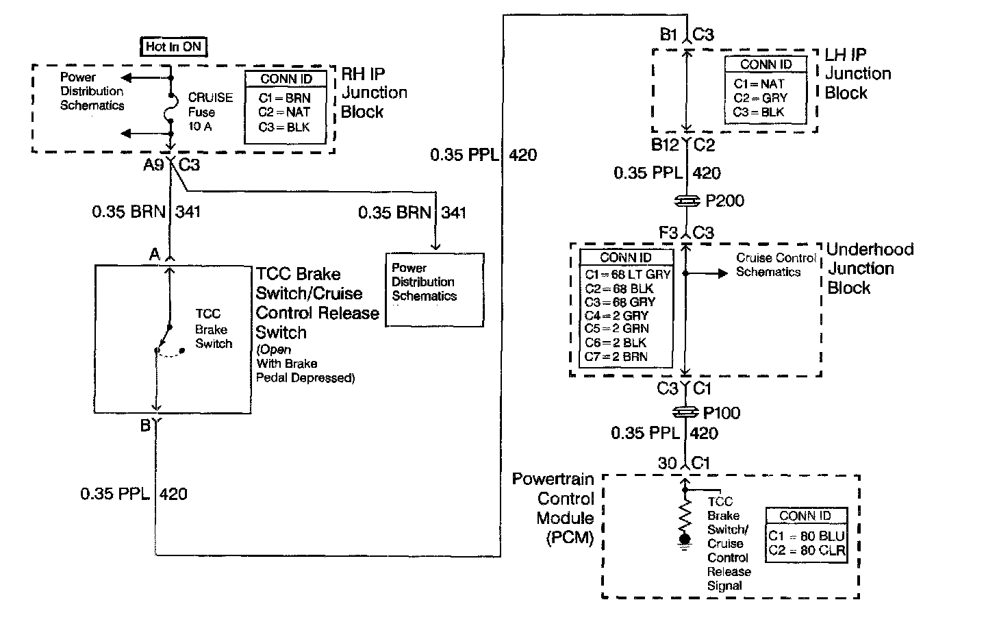 2. Disconnecting the brake switch connector, and observing a status change, isolates the brake switch as the source of the DTC.
