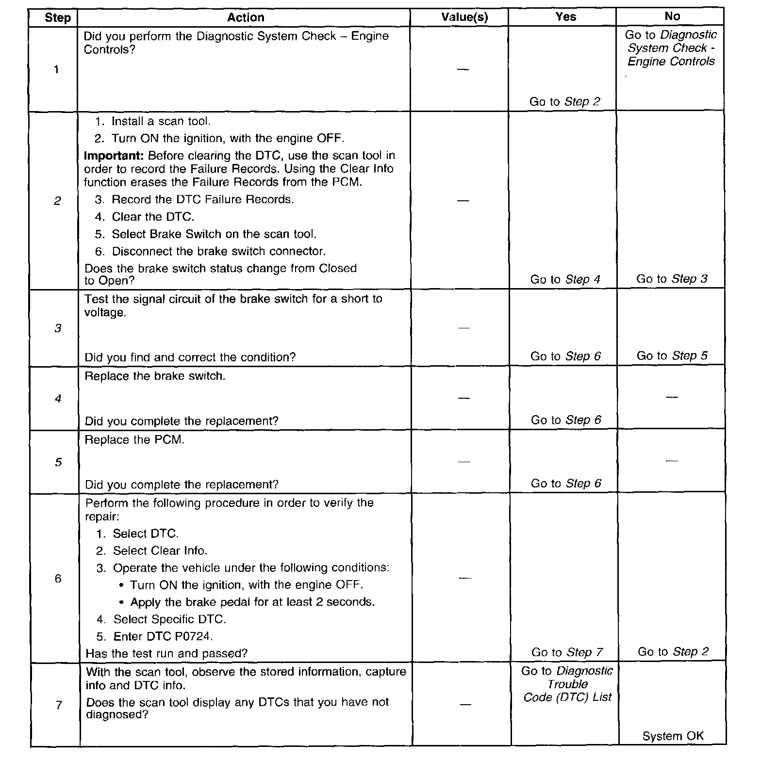 ^ The PCM stores DTC P0724 in PCM history.