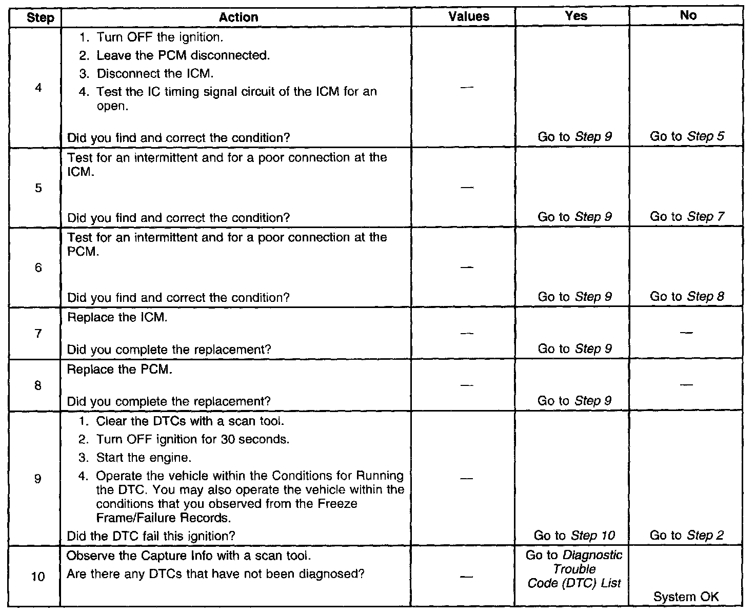 - The PCM detects an open circuit in the IC timing signal circuit.