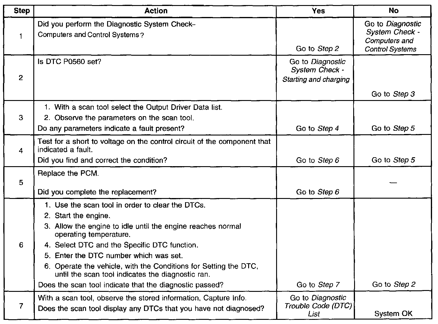 Output driver modules (ODMs) are chips that are inside the powertrain control module (PCM). The ODMs provide grounded outputs that control devices. Each output has an internal feedback circuit that connects to the PCM microprocessor. The ODM 1 determines if the voltage or the current may cause damage to the PCM. The PCM monitors voltage through the ignition 1 input. Any incorrect current that is on a circuit to the ODM will cause the ODM to report this DTC.