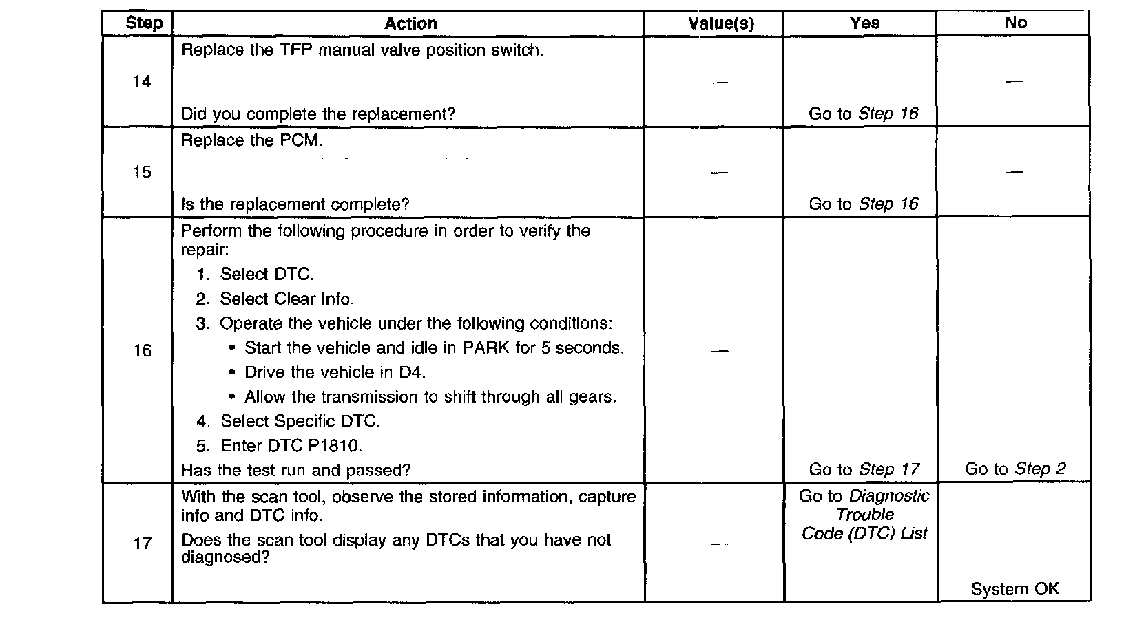 When the PCM detracts an invalid gear range, DTC P1810 sets. DTC P1810 is a type B DTC.