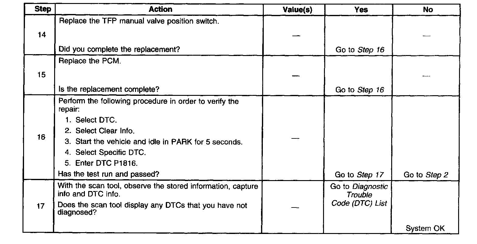 When the PCM detects P/N indicated with a drive gear ratio, DTC P1816 sets. DTC P1816 is a type B DTC.