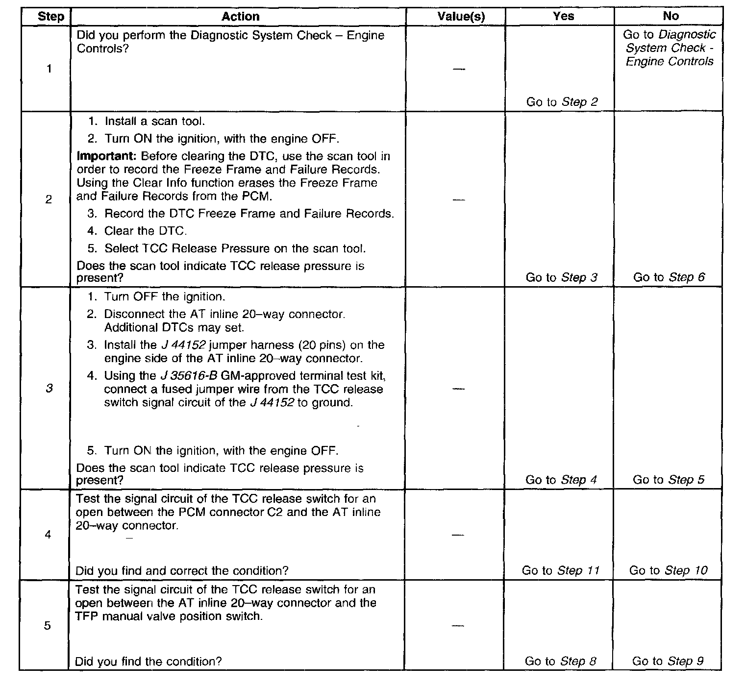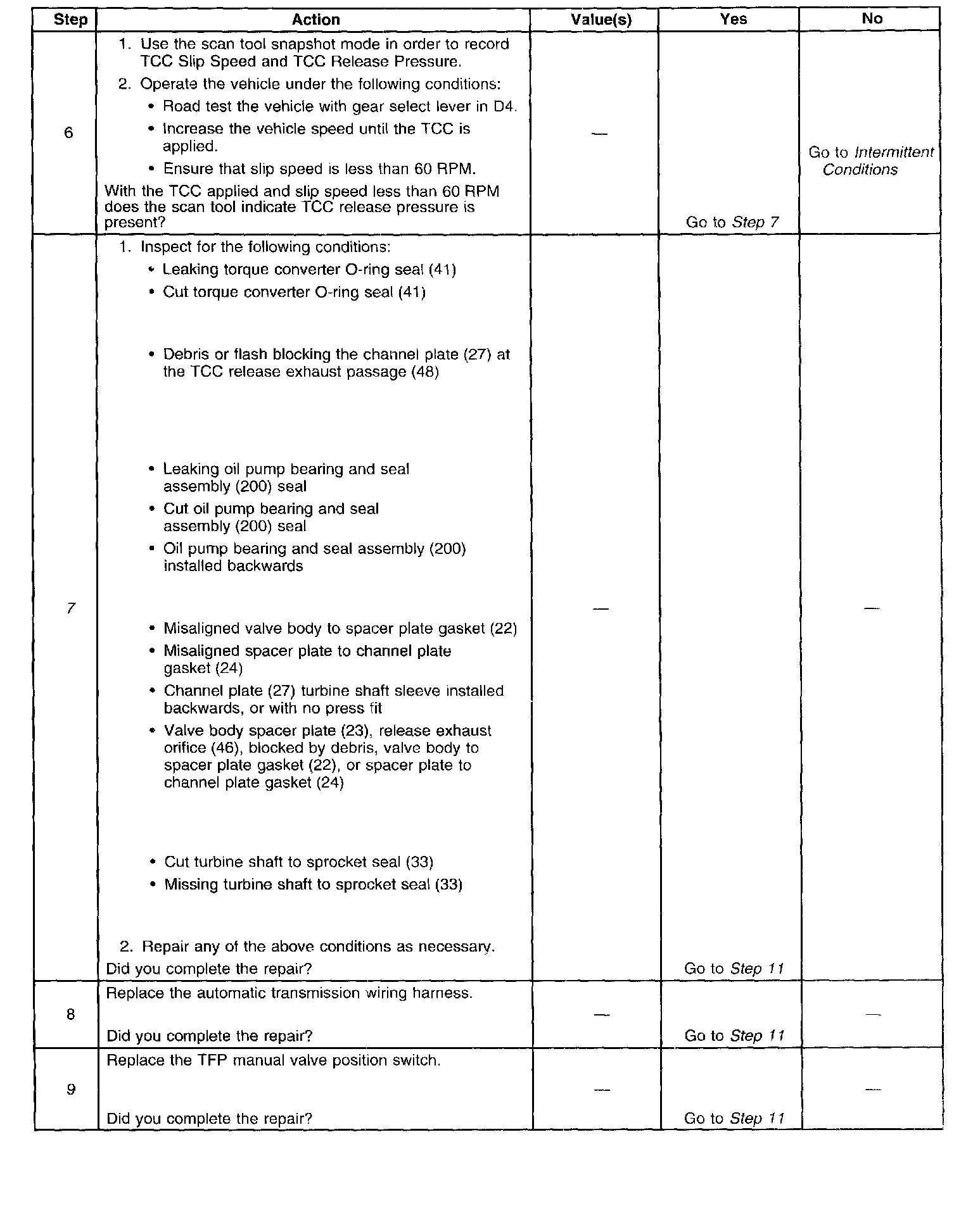 ^ No TCC DTCs P0741 or P0742.